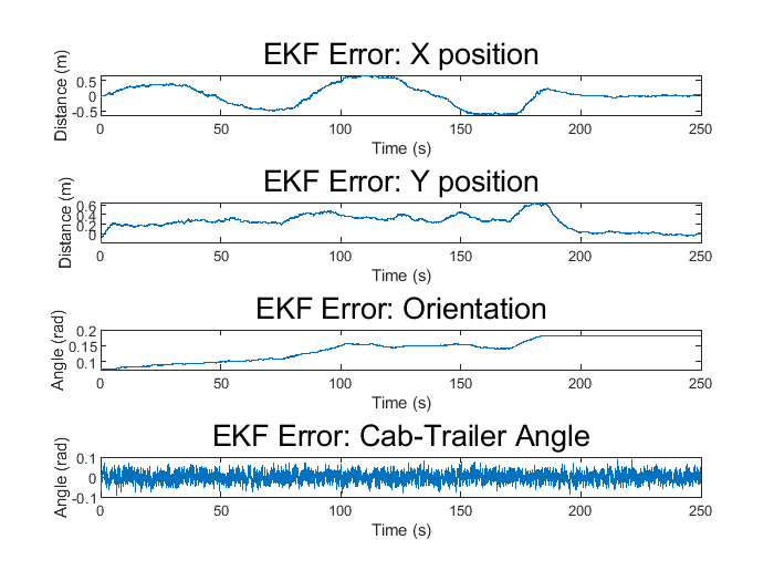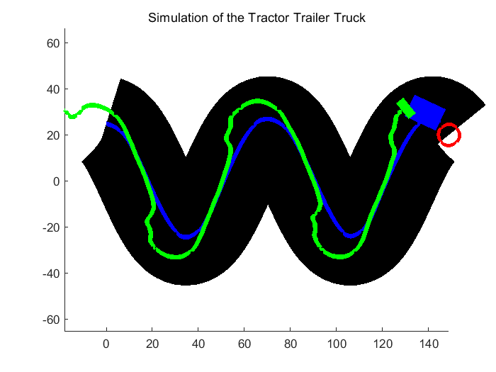 - 轨迹跟踪精度要求高:弯曲道路对路径偏差的容忍度低(如狭窄巷道转弯时,横向偏差超过 0.5m 即可能碰撞路沿),需控制牵引车转向角使拖车沿参考轨迹(如道路中心线)行驶。