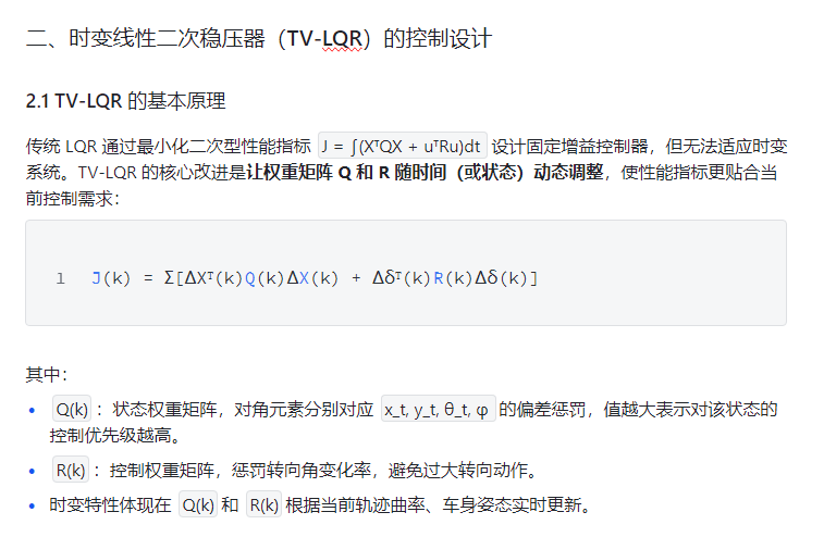 可见,A(k)和B(k)随θ_t、φ和δ₀动态变化,这正是采用时变 LQR的核心原因。