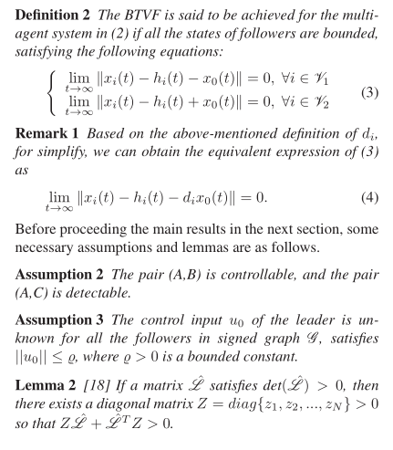 在多智能体系统协同控制领域,二分队形控制因能处理具有对抗性相互作用的网络拓扑(如合作与竞争并存的场景)而备受关注。本文研究有向图下含未知输入领导者的多智能体系统分布式二分时变队形控制问题,提出一种自适应非光滑协议。该协议仅利用相邻智能体间的局部输出反馈信息,无需依赖图拉普拉斯矩阵的特征值信息,为复杂动态网络的协同控制提供了更具实用性的解决方案。