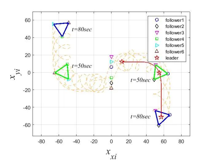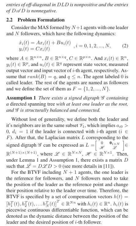 多智能体系统的二分控制要求智能体根据网络拓扑中的 “符号关系”(正边表示合作,负边表示竞争)形成两组对立的协同群体,而时变队形则需要群体在运动过程中实时调整相对位置,以适应动态任务需求(如动态障碍物规避、轨迹跟踪等)。在实际应用中,领导者往往作为全局目标的引导者,但其输入可能因外部干扰、任务调整等原因具有未知性,这为队形控制的稳定性和准确性带来了挑战。