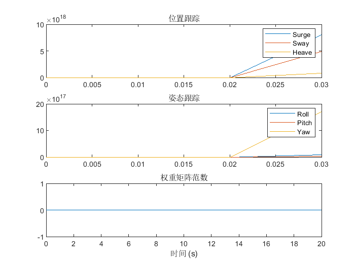 - 权重矩阵 W_hat 初始化为 20x6 的零矩阵,将在仿真过程中通过学习不断更新。