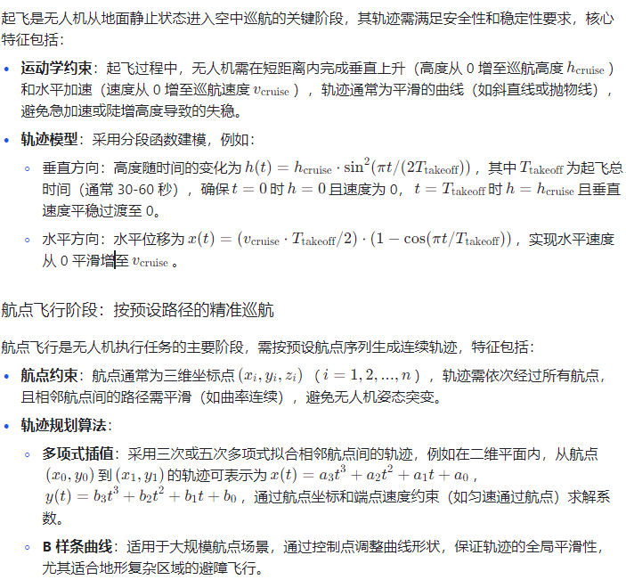 无人机飞行轨迹的模拟可视化是无人机路径规划、任务调度和飞行安全评估的重要工具。通过直观呈现无人机从起飞、航点飞行到降落的完整过程,可帮助操作人员预判飞行风险、优化路径效率,并为算法验证(如轨迹跟踪控制算法)提供可视化依据。本文围绕无人机全流程飞行轨迹的模拟可视化展开,详细说明各阶段的轨迹特征、建模方法及可视化实现方案。