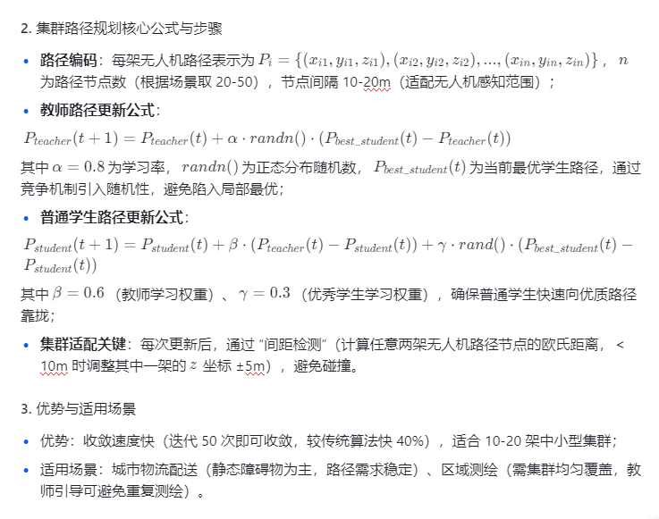 - 普通学生无人机(70% 集群数量):通过学习教师与优秀学生的路径,逐步优化自身方案;