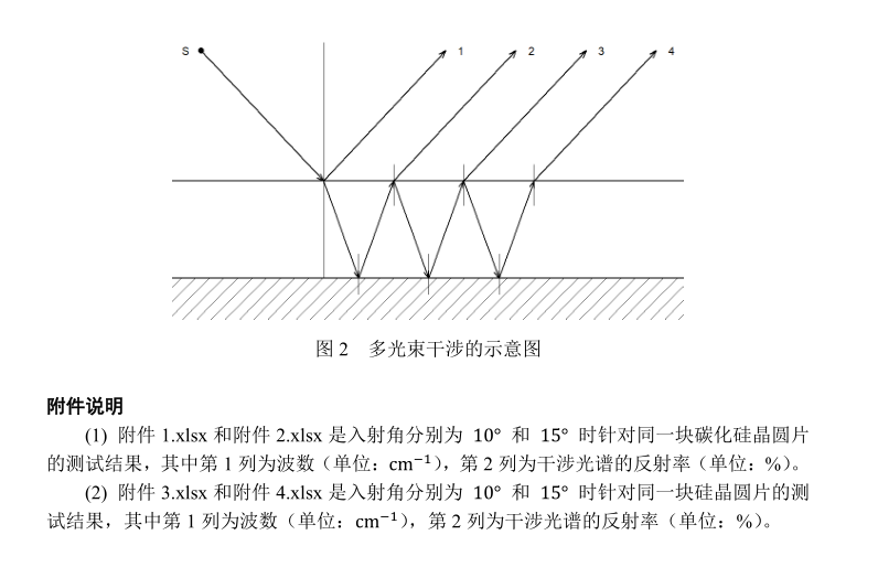问题 3 光波可以在外延层界面和衬底界面产生多次反射和透射(图 2),从而产生多光束干涉。请推导产生多光束干涉的必要条件,以及多光束干涉对外延层厚度计算精度可能产生的影响。