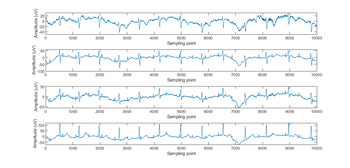 - 母体心电信号(MECG):孕妇自身心电信号强度是 FECG 的 5-10 倍,且频率范围与 FECG 部分重叠(FECG 心率通常为 110-160 bpm,MECG 心率通常为 60-100 bpm),是 FECG 提取的最主要干扰;
