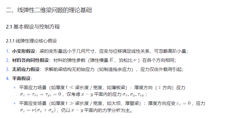 本文基于线弹性理论与有限元方法,系统阐述 “多种单元类型划分 + 多应力边界施加” 的二维梁问题求解流程,涵盖平面应力(薄梁,厚度方向应力可忽略)与平面应变(厚梁,厚度方向应变可忽略)两种场景,为复杂梁结构的力学分析提供可复现的求解框架。