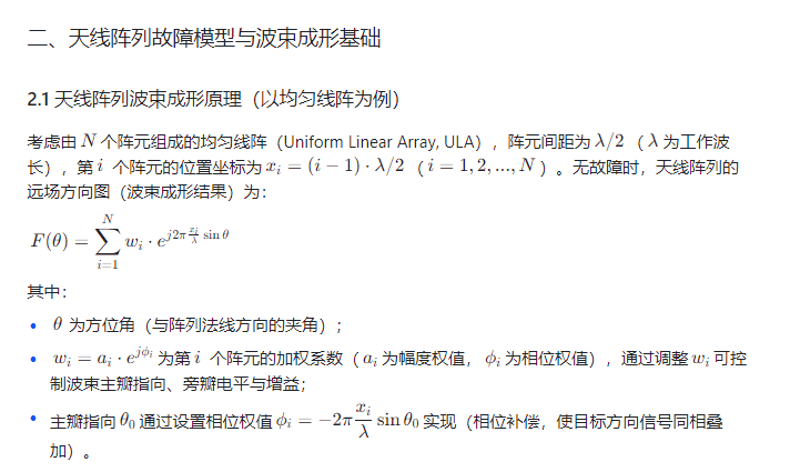 天线阵列(如相控阵天线、MIMO 天线)作为无线通信、雷达探测、卫星导航等系统的核心部件,其波束成形性能直接决定系统的信号覆盖、抗干扰能力与探测精度。在复杂工作环境中,天线阵列易因元件老化、电磁干扰、物理损伤等导致单元故障(如阵元短路、馈电链路中断、移相器失效),故障阵元会破坏波束的相位与幅度分布,引发波束畸变(如主瓣展宽、旁瓣抬升、增益下降),严重时甚至导致通信中断或目标探测失效。