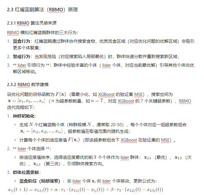 红嘴蓝鹊算法(RBMO)作为模拟红嘴蓝鹊群体觅食、警戒、协作行为的新型智能优化算法,具有 “全局寻优能力强、收敛速度快、参数设置少” 的独特优势。将 RBMO 用于单变量时序预测场景下的 XGBoost 超参数优化,可高效搜索最优超参数组合,解决传统优化方法的缺陷,提升模型对单变量时序数据非线性规律的捕捉能力。本文提出的 RBMO-XGBoost 模型,为单输入单输出的单变量时序预测提供 “高精度、高效率、易落地” 的解决方案,对提升工程场景中基础时序预测任务的可靠性具有重要实用价值。