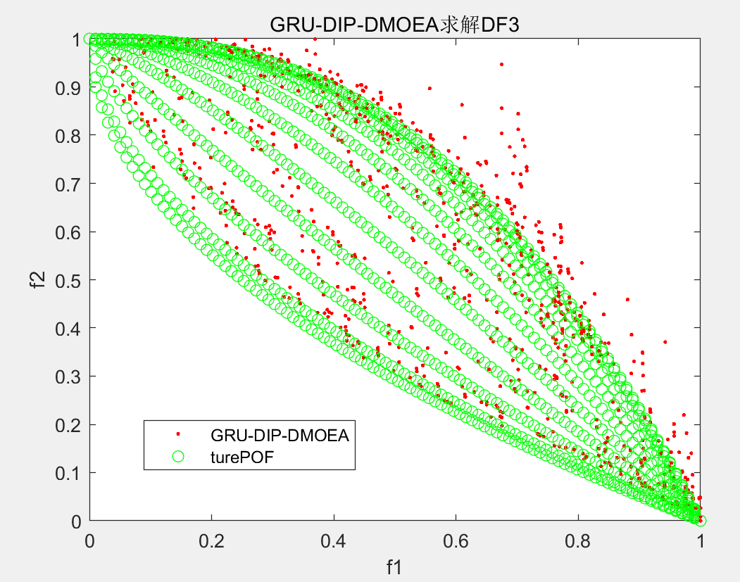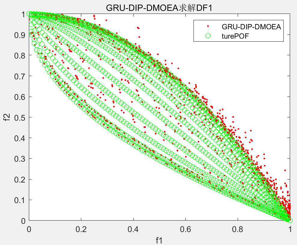 GRU-DIP-DMOEA 以经典多目标进化算法(如 NSGA-II)为基础框架,融合GRU 时序预测模块与定向改进预测策略(DIP),形成 “环境感知 - 时序预测 - 定向引导 - 种群进化” 的闭环流程,具体框架如下: