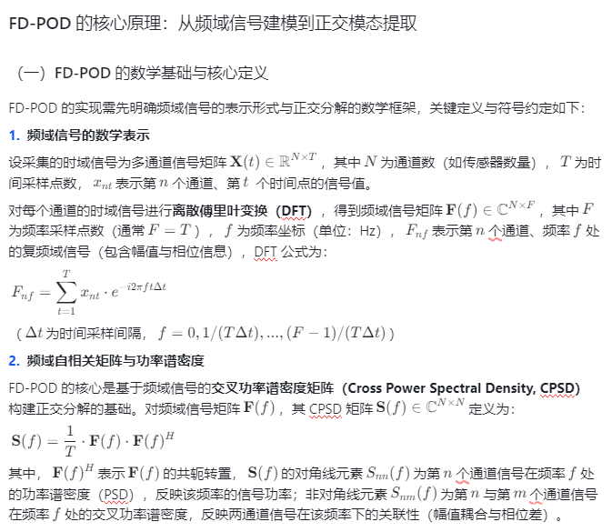 传统 POD 多基于时域信号展开,通过构建信号的自相关矩阵、求解特征值与特征向量获取正交基函数。然而,在处理具有显著频率特性的信号(如机械振动中的多频谐波、通信信号中的调制频率、生物电信号中的节律成分)时,时域 POD 逐渐暴露出局限性: