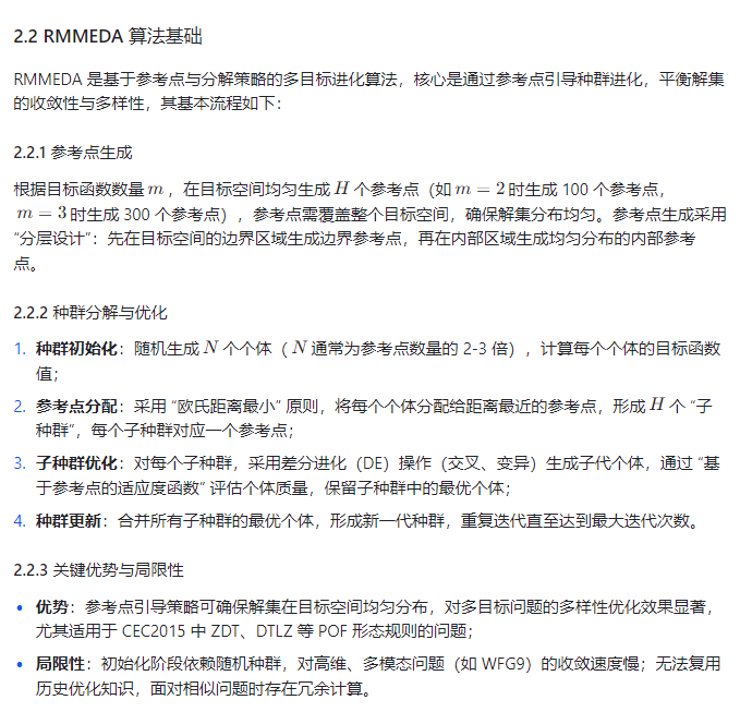 传统多目标进化算法(MOEAs)如 NSGA-II、RMMEDA(Reference Point-based Multi-Modal Evolutionary Algorithm based on Decomposition)虽能处理部分 MOPs,但存在明显局限性:一方面,RMMEDA 通过参考点分解策略提升解集多样性,但其优化过程依赖 “从零开始” 的种群进化,面对 CEC2015 中高维(如 DTLZ7 的 30 维决策变量)或多模态问题(如 WFG9 的多峰 POF)时,需大量迭代才能逼近 POF,收敛效率低下;另一方面,当优化任务存在相似性(如 CEC2015 中 ZDT1 与 ZDT2 的 POF 形态相似)时,传统算法无法复用历史优化知识,导致重复计算,浪费算力资源。