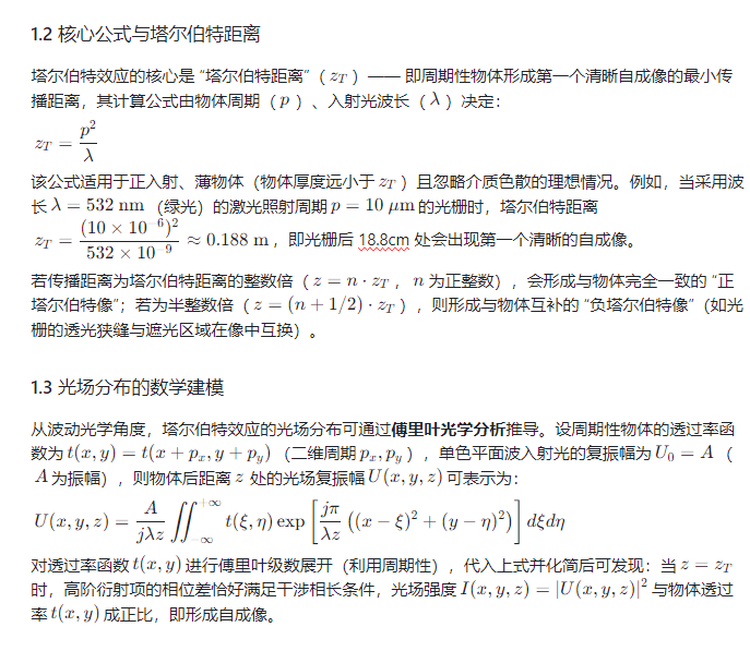 - 入射光特性:需为单色相干光(如激光),相干性不足会导致塔尔伯特像对比度下降;