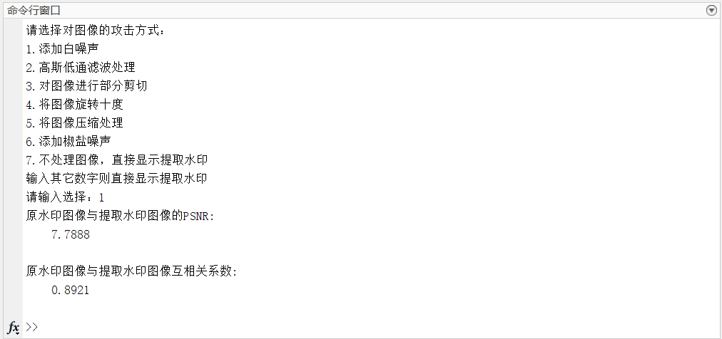 本研究聚焦基于 DWT 的数字水印图像隐藏技术,系统阐述水印嵌入、提取流程,通过模拟常见图像处理攻击验证方案鲁棒性,并采用峰值信噪比(PSNR)与归一化相关系数(NC)量化评估性能,为图像版权保护与信息隐藏应用提供技术支撑。