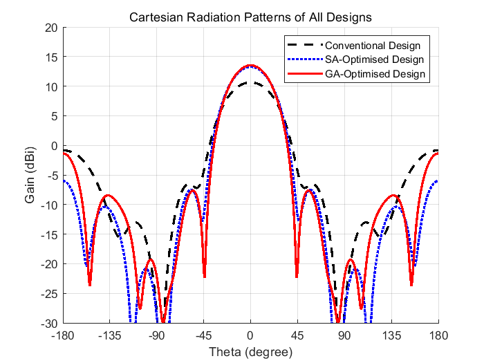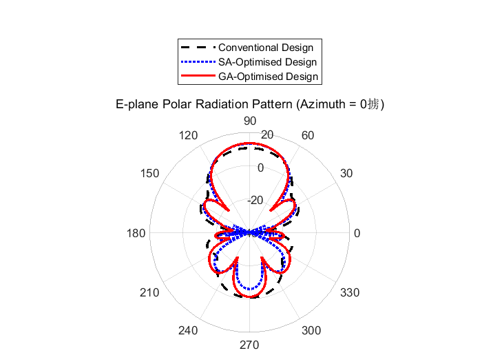在每一代的进化进程中,遗传算法会依据精心设计的适应度函数,对种群中的每个个体进行全面而细致的评估。这个适应度函数就像是一把精准的 “度量衡”,能够准确衡量每个个体(即天线参数组合)与我们期望的天线性能目标之间的契合程度。比如,它会着重考量天线的增益、方向性、副瓣电平这些关键性能指标。增益越高,意味着天线能够更有效地将信号发射或接收,就像一个信号放大器,让信号传播得更远、更清晰;方向性越强,天线就能够更精准地指向目标方向,避免信号的散射和浪费,如同聚光灯一般,将光线聚焦在特定的区域;副瓣电平越低,则表明天线在非主瓣方向上的辐射能量越少,减少了对其他方向的干扰,使得信号传输更加纯净、稳定。适应度函数会综合这些指标,为每个个体赋予一个适应度值,这个值越高,就代表该个体越接近我们的理想目标,如同在生物进化中,适应度高的个体更能在竞争激烈的环境中生存和繁衍。