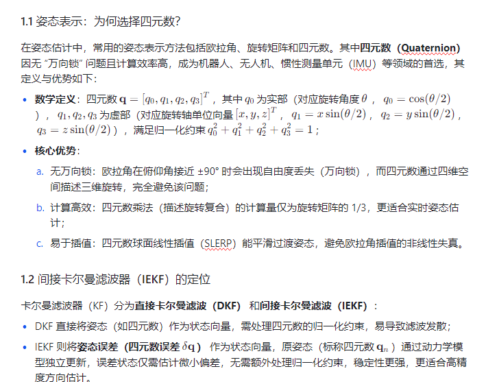 一、核心概念:姿态表示、间接卡尔曼滤波与外部加速度挑战