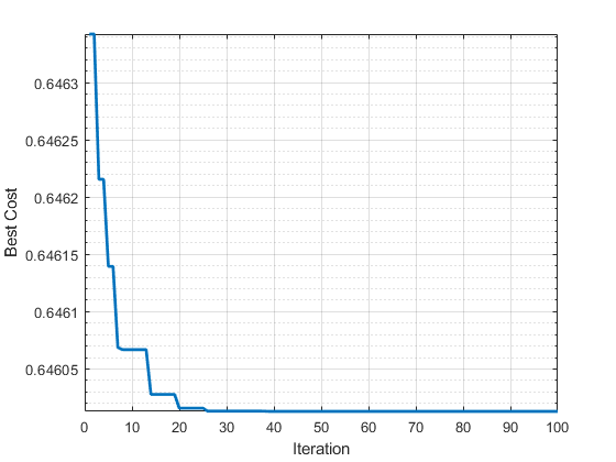 该文件中采用的混合ABC-PSO算法是为快速收敛而设计的,仅在10到40次迭代中获得了最佳结果。它显示了IEEE 14总线系统的100%成功率,并且每次迭代的平均计算时间仅为0.041秒,表现优于其他五种基准优化技术。