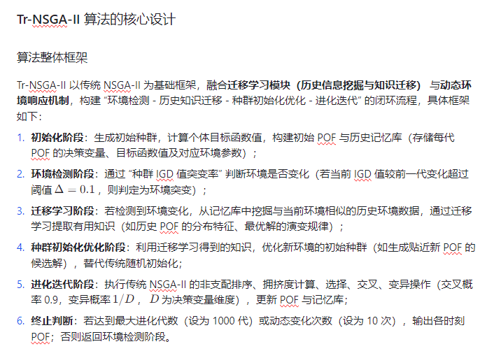 - 历史信息浪费:每次环境变化后,传统 NSGA-II 仅保留当前种群,丢弃历史 POF/POS 信息,在 CEC2015 的 D9(周期性变化)问题中,无法复用历史周期的最优解,导致每次周期重复时需重新探索,计算效率降低 50%;