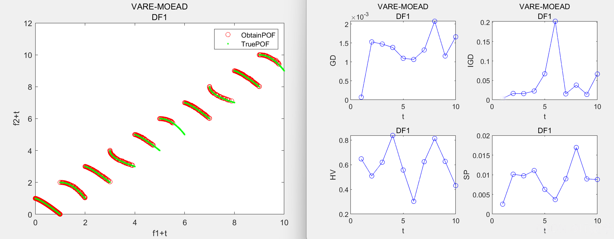 CEC2018 动态多目标优化测试集(DF1-DF14)作为国际权威基准,以其涵盖的 “Pareto 最优前沿(POF)漂移、形态突变、约束动态调整” 等复杂特性,成为检验算法动态适应能力的核心标准。传统动态多目标优化算法(如 MOEA/D、NSGA-II)在应对 DF1-DF14 的多模态特性(如 DF7 的 POS 多峰值分布、DF12 的 POF 多区域分裂)时,常面临 “模态丢失”“跟踪滞后”“解分布不均” 等问题。在此背景下,基于迹比正则化的多模态分布估计算法(TrRMMEDA,Trace Ratio Regularized Multi-Modal Estimation of Distribution Algorithm) 应运而生 —— 该算法通过 “多模态分布估计” 精准捕捉 DF1-DF14 的复杂最优解集结构,结合 “迹比正则化” 实现动态环境下的解多样性保持与快速跟踪,为 CEC2018(DF1-DF14)的高效求解提供了创新方案。本文将从 TrRMMEDA 核心原理、DF1-DF14 针对性设计、实验验证三方面,全面解析该算法的技术细节与性能优势。