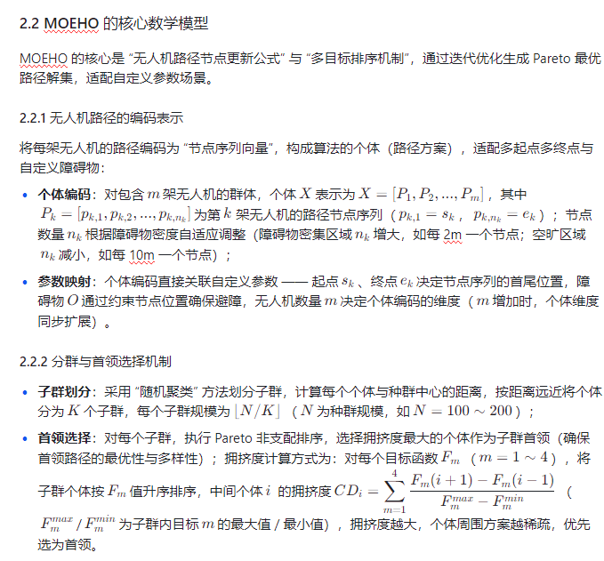 MOEHO 源于野生麋鹿群体的协同生存行为,将无人机群体类比为麋鹿群体,通过 “分群觅食(全局搜索)、首领引导(局部优化)、迁徙避障(动态响应)” 三大机制,结合 Pareto 非支配排序处理多目标冲突,适配多无人机协同路径规划的复杂需求。