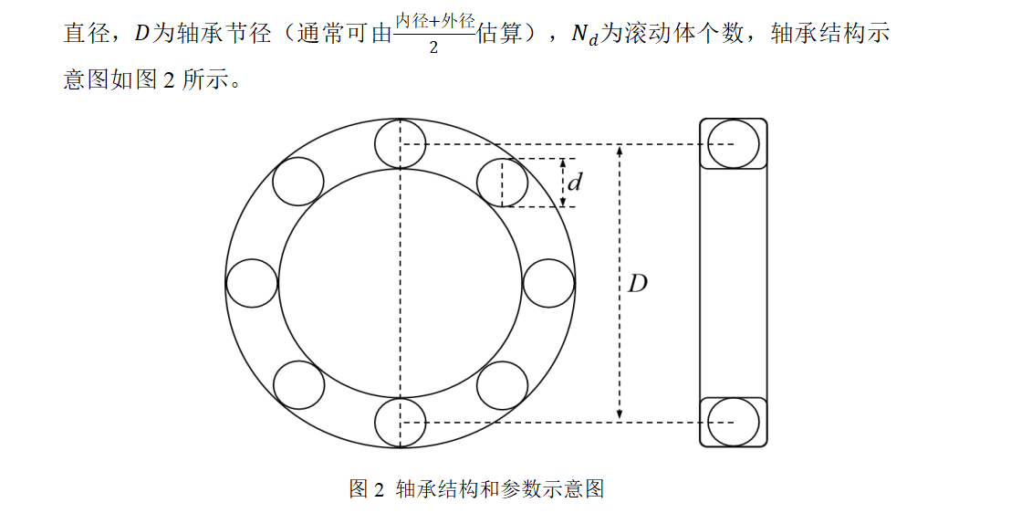 - 频域特征分析:利用快速傅里叶变换(FFT)将时域信号转换至频域,提取故障特征频率。根据轴承尺寸参数(表 1)计算理论故障特征频率,公式如下: