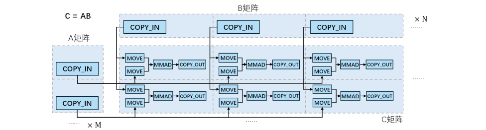 首先,忽略缓存管理节点后,所有的计算图都以COPY_IN节点开始(将数据从核外内存搬入核内缓存),经过一系列核内基本运算,最终以COPY_OUT节点结束(将计算结果从核内缓存搬出至核外内存)。