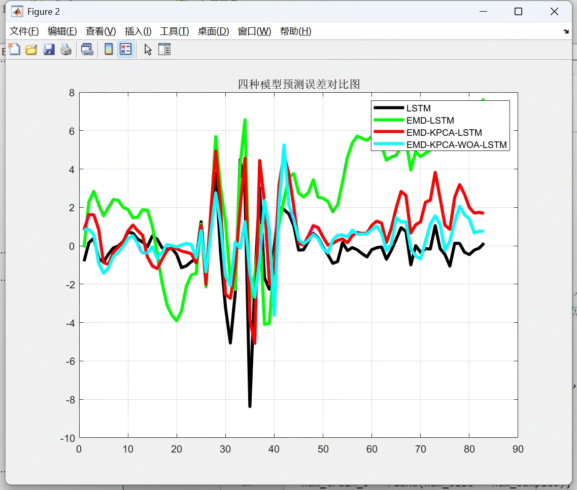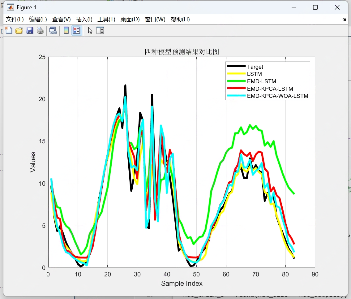 在多变量时序预测场景中(如工业设备能耗预测、区域 PM2.5 浓度预测),输入变量常存在 “噪声干扰、维度冗余、时序依赖复杂” 等问题,传统 LSTM 模型易受噪声影响且超参数依赖人工调优。EMD-KPCA-WOA-LSTM 模型通过 “经验模态分解(EMD)降噪、核主成分分析(KPCA)降维、鲸鱼优化算法(WOA)超参数优化、长短期记忆网络(LSTM)时序建模” 的四级协同架构,精准解决多变量数据的预处理与模型优化难题,为多输入单输出时序预测提供高鲁棒性、高精度的解决方案。