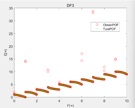 | 多目标 Pareto 排序 | 结合预测的环境权重,动态调整 Pareto 支配关系(如预测目标数增加则提前预留维度),确保 PF 追踪的前瞻性 | DF3 的目标数 2→3→2 切换、DF6 的目标权重变化 |