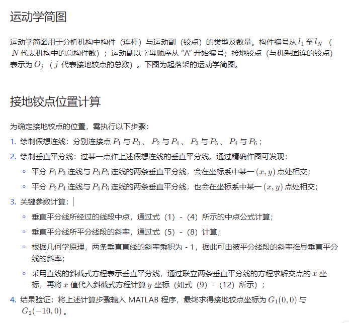 深入理解四连杆机构的运动特性及常用运动分析方法,并将四连杆机构相关知识应用于飞机起落架的分析中。通过 MATLAB 编写代码,对起落架的运动过程进行仿真,同时绘制图形,展示连杆(连架杆)角度与输入杆角度的关系,以及输出杆角度与输入杆角度的关系