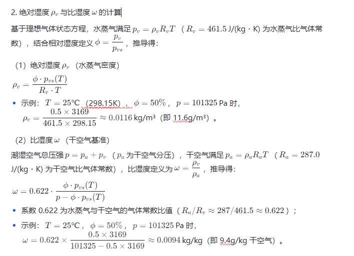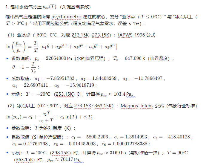 潮湿空气的 psychrometric 属性计算依赖 “理想气体状态方程”“饱和蒸气压经验公式” 及 “能量守恒关系”,针对 - 60~90℃的宽温度范围,需选择覆盖亚冰点(-60℃~0℃)与超高温(0℃~90℃)的通用模型,核心公式如下:
