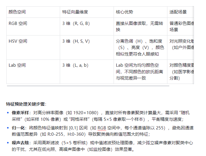 - 层次聚类算法:虽能生成聚类树,但内存消耗大,无法处理百万像素级图像,工程实用性低。