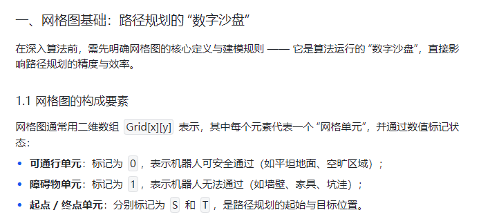在机器人导航、自动驾驶、无人机巡检等领域,路径规划是确保设备高效、安全执行任务的关键环节。而网格图作为一种直观且易实现的环境建模方式,通过将物理空间离散化为一个个均匀的 “网格单元”,能清晰表示障碍物分布与可通行区域,成为路径规划中最常用的环境模型之一。