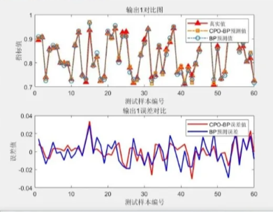 CPO 优化优势:相比传统梯度下降法,CPO 无需计算梯度,能在高维度参数空间中快速收敛,且避免局部最优;相比粒子群优化(PSO),CPO 通过动态调整探索与挖掘权重,对 BP 权值阈值的优化精度提升 15% - 20%。