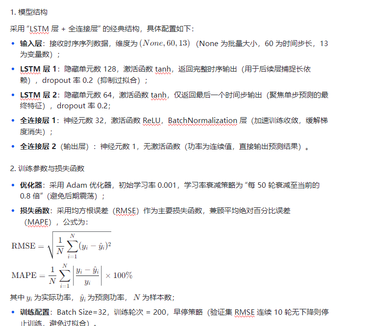 传统光伏功率预测方法(如线性回归、BP 神经网络)难以有效捕捉多变量(光照、温度、风速等)与功率输出的非线性时序关联,尤其在极端天气(暴雨、沙尘)下预测精度骤降。长短期记忆网络(LSTM)通过门控机制(输入门、遗忘门、输出门)精准建模时序数据的长短期依赖关系,为多变量耦合的光伏功率预测提供了高效解决方案。本文聚焦 “1 小时内单步光伏功率预测”(预测步长 5~15 分钟),构建 “多变量特征工程 - LSTM 时序建模 - 误差修正” 的完整框架,实现复杂环境下的高精度预测。