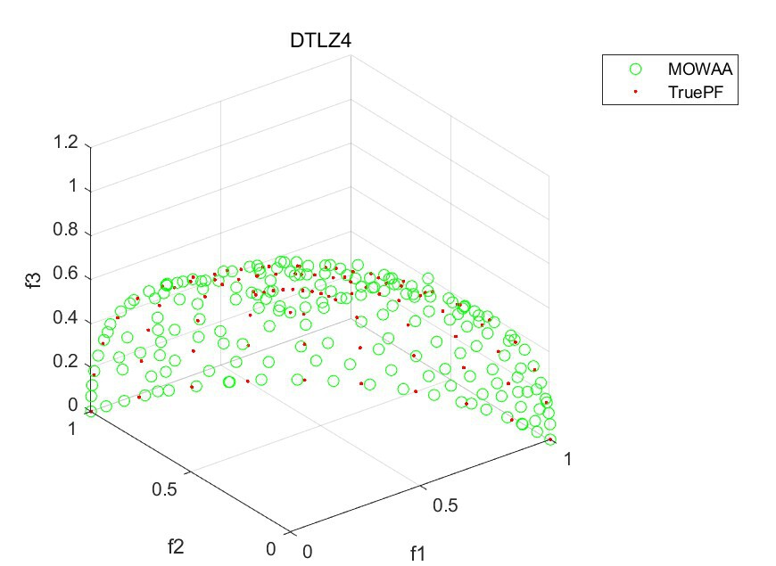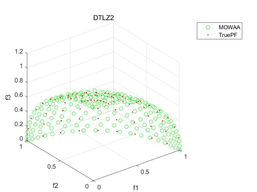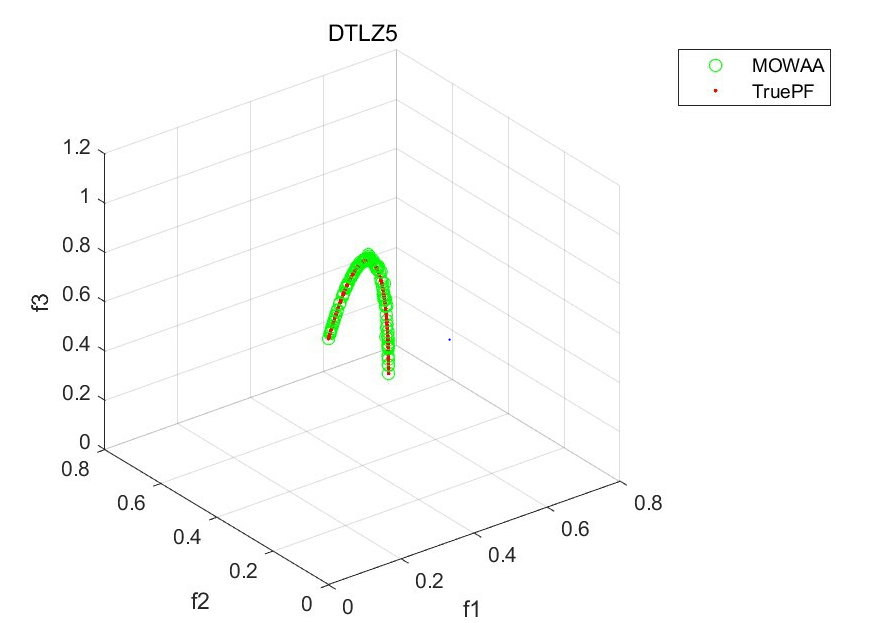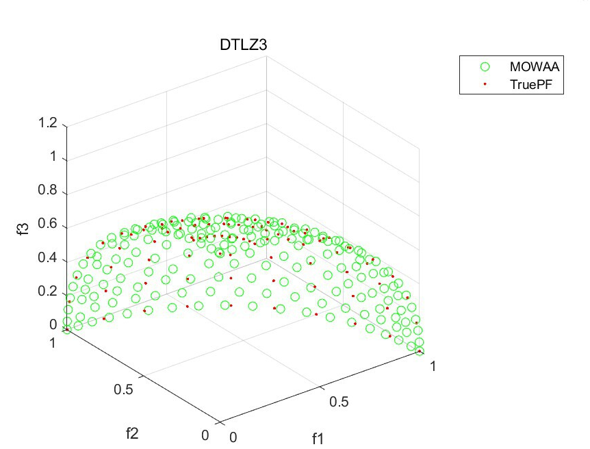 - DTLZ1:线性帕累托前沿,含 3 个目标,决策变量数可调整,用于测试算法收敛性;