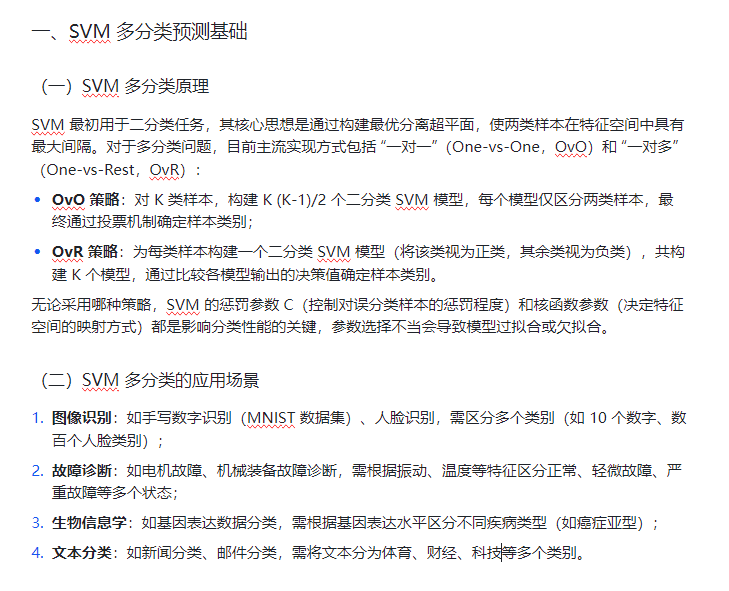 在人工智能与机器学习领域,多分类预测任务广泛存在于图像识别、故障诊断、生物信息学等关键场景。支持向量机(SVM)作为经典的分类模型,凭借其在小样本、高维数据场景下的优异泛化能力,成为多分类任务的重要工具。然而,SVM 的分类性能高度依赖于惩罚参数(C)和核函数参数(如高斯核的 σ)的选择,传统参数寻优方法(如网格搜索、随机搜索)存在效率低、易陷入局部最优的问题。