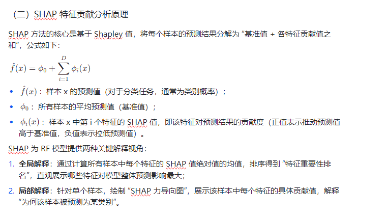 在机器学习分类任务中,随机森林(Random Forest,RF)凭借其抗过拟合能力强、对噪声数据鲁棒、无需复杂参数调优等优势,被广泛应用于医疗诊断、金融风险评估、工业故障检测等领域。然而,RF 作为集成学习模型,其 “多棵决策树投票” 的工作机制导致模型存在 “黑箱” 特性 —— 难以解释每个特征对分类结果的具体影响,这在对模型可解释性要求较高的场景(如医疗诊断中判断疾病风险因素)中成为明显短板。