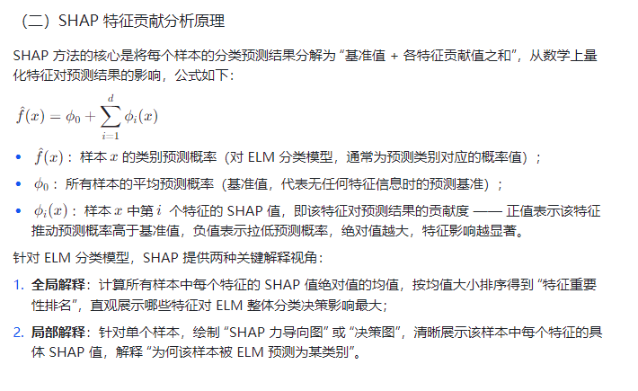 SHAP(SHapley Additive exPlanations)方法基于博弈论中的 Shapley 值,通过量化每个特征对预测结果的贡献度,为机器学习模型提供可解释性支持。它既能从全局视角揭示所有特征对 ELM 分类模型的整体影响权重,又能从局部视角拆解单个样本中各特征的具体贡献,完美解决 ELM 的黑箱问题。本文将系统介绍 ELM 极限学习机的分类原理,结合 SHAP 特征贡献分析方法,详细阐述如何通过全局与局部双重解释视角,提升 ELM 模型的透明度,并提供实际应用场景下的实现思路与结果解读。