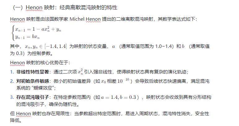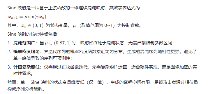 当前,主流的图像加密算法多基于混沌系统,如 Logistic 映射、Henon 映射、Sine 映射等。单一混沌映射虽具有对初始条件和参数的敏感性、伪随机性等特性,但存在混沌范围有限、复杂度不足等缺陷,在面对差分攻击、暴力破解等高级攻击手段时,安全性难以满足需求。为解决这一问题,研究人员开始探索多混沌映射耦合的加密方案。其中,耦合 Henon 和 Sine 映射凭借更广阔的混沌参数空间、更复杂的动力学行为,为彩色图像加密提供了新的技术路径,能够有效提升加密算法的抗攻击能力,打破单一映射的安全瓶颈。