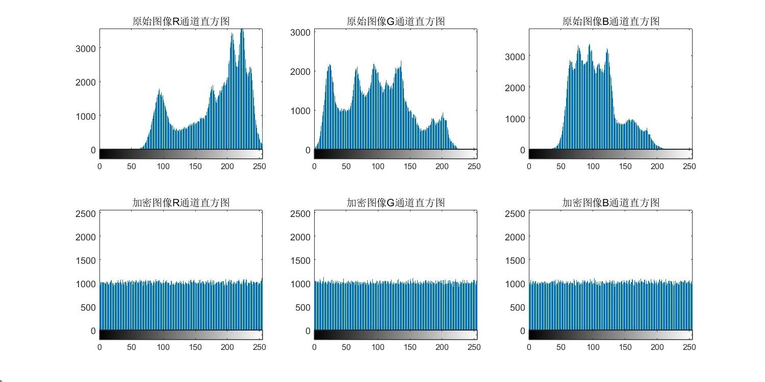 R通道: 原始图像信息熵 = 7.2682, 加密图像信息熵 = 7.9992
