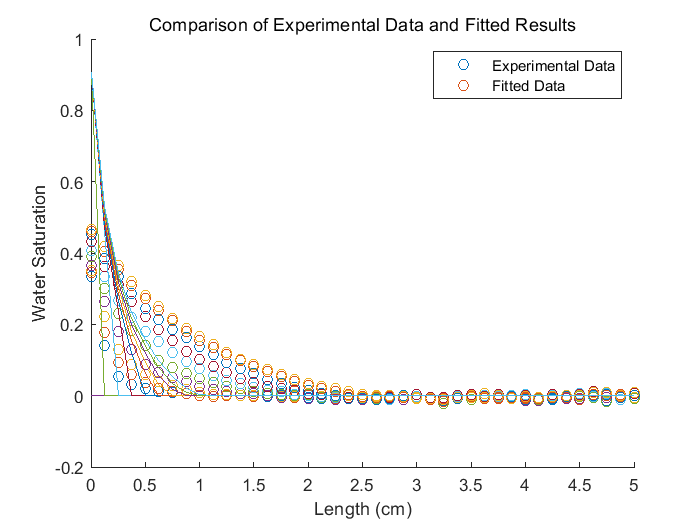 term2 = (K / phi) * (1 / (1 / (Krw_n) / mu_w +(Kro_n / mu_o))) * pc * (S_new(n, t) - S_new(n-1, t)) / DX^2 * DT;