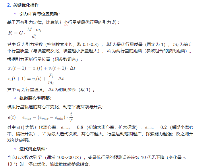 - 恒星引力:预测误差最小的 “最优行星”(当前最优参数组合)产生引力,引导其他行星向其靠近;