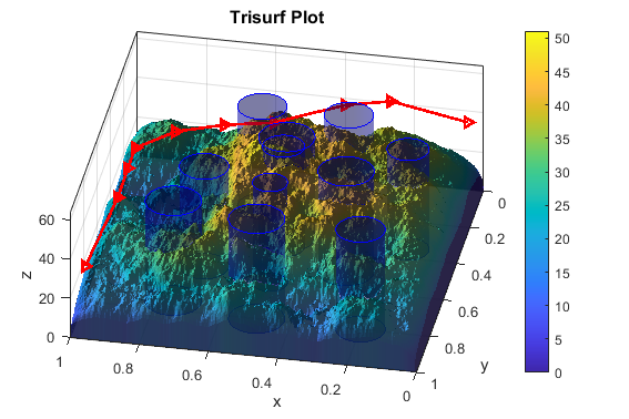 传统 PSO 生成的路径点多为离散点,相邻点间的高度差、航向角变化可能超过无人机物理约束 —— 例如,相邻路径点的高度差达 100m,导致爬升角超过 25°(超出无人机最大限制),需额外进行路径平滑处理,增加了算法复杂度与计算成本。