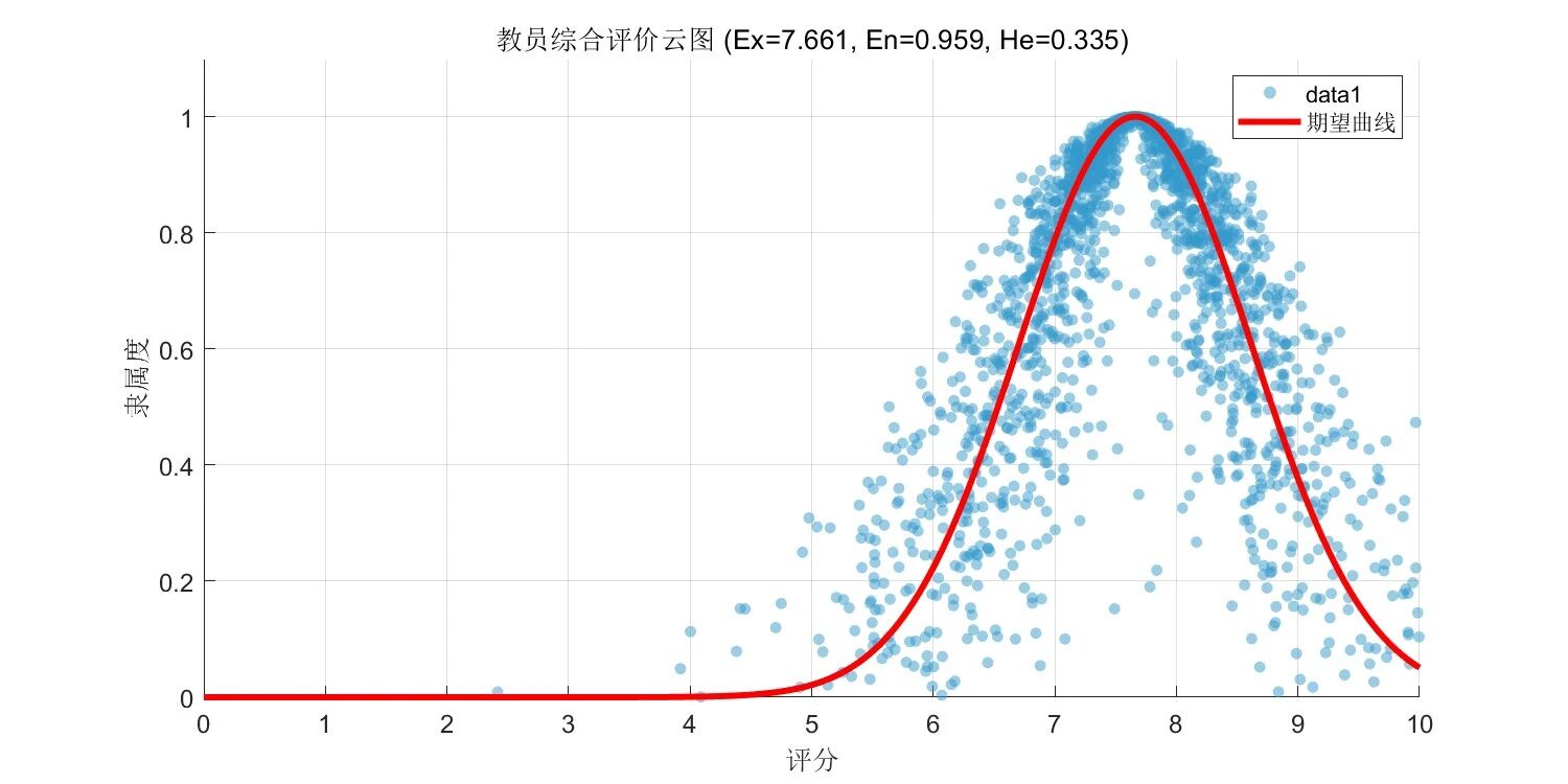教员综合评价云: Ex=7.661, En=0.959, He=0.335