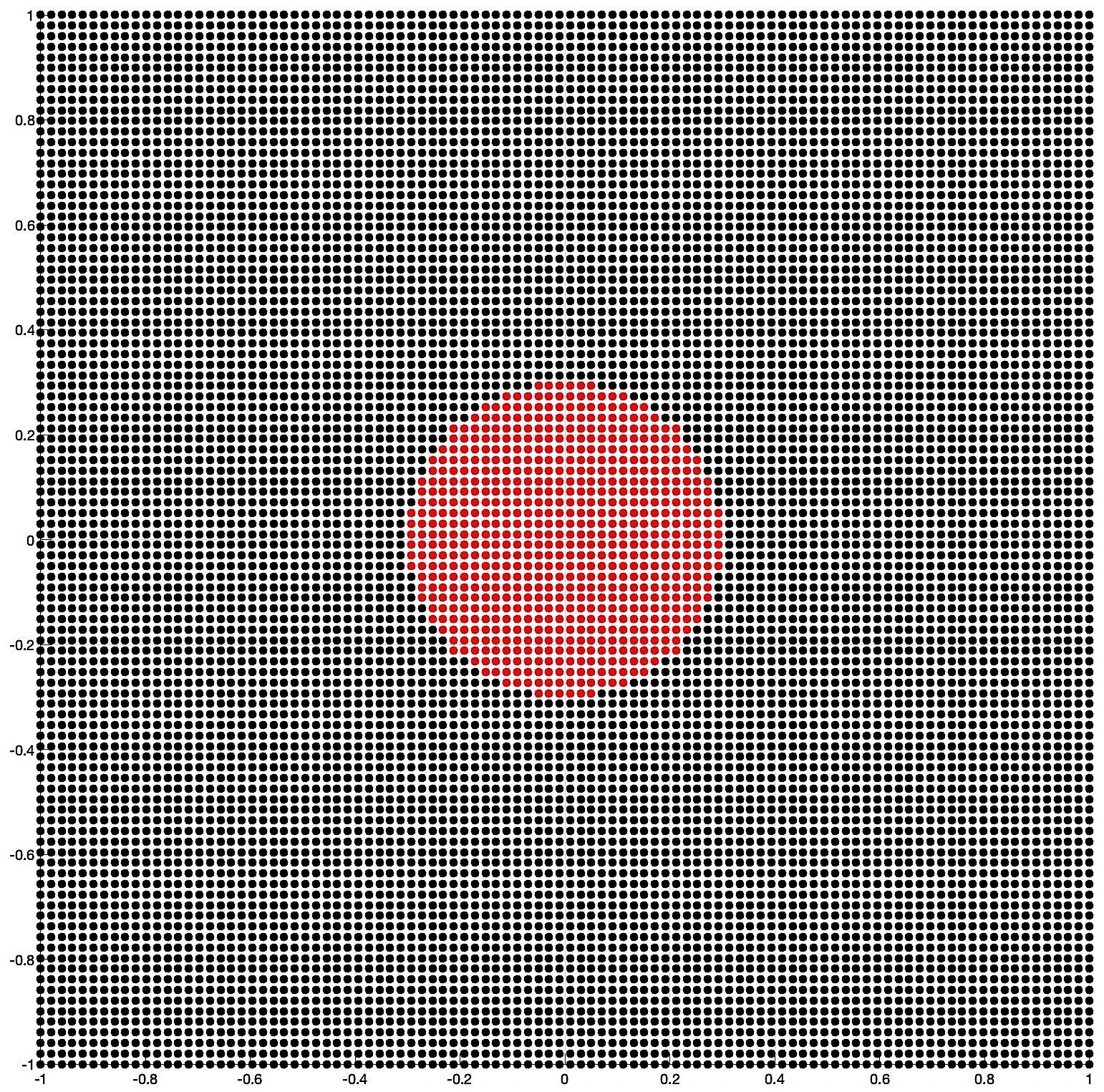 scatter(X,Y,'red','filled');