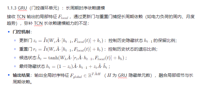 四模块并非简单叠加,而是按 “特征预处理 - 局部建模 - 长依赖捕捉 - 关键聚焦” 的递进逻辑融合,各模块功能如下: