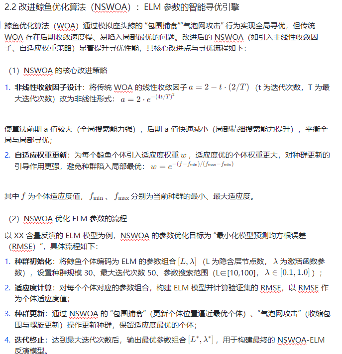 二、核心算法原理:NSWOA 的寻优机制与 ELM 的建模特性