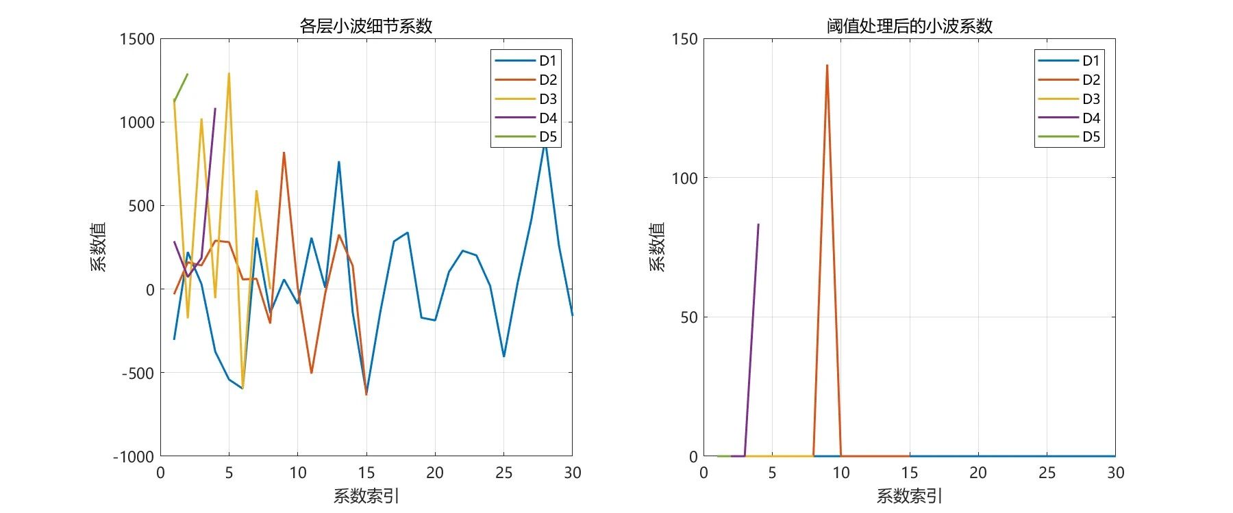 小波消噪: 使用db1小波,5层分解,软阈值法