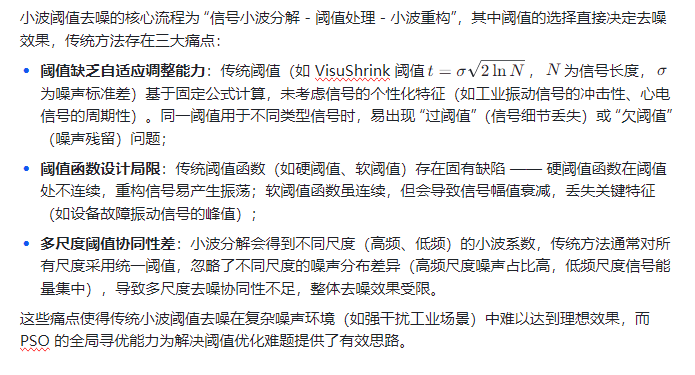 一、传统小波阈值去噪的核心痛点与 PSO 的适配优势