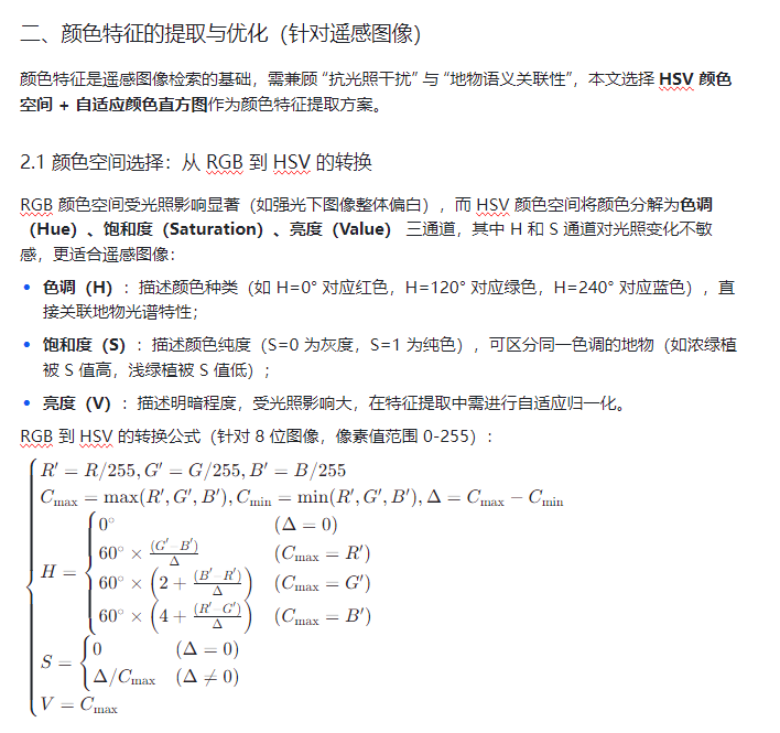 - 精度需求:检索结果的 “查准率”(返回的相关图像占比)≥85%,“查全率”(所有相关图像的召回占比)≥80%,避免因特征偏差导致地物误判(如将裸地误判为农田);