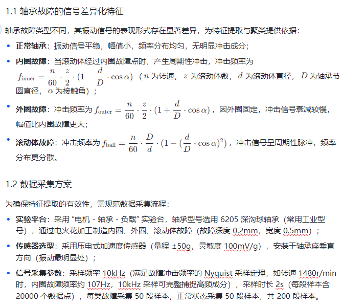 轴承作为旋转机械的核心部件,其故障(如内圈磨损、外圈剥落、滚动体损伤)会导致设备振动异常,甚至引发停机事故。轴承故障诊断的核心是 “从振动信号中提取故障特征,并通过聚类分析实现故障类型的自动划分”—— 特征提取需精准捕捉故障信号的差异化信息,聚类分析需有效区分正常与各类故障模式。本文针对轴承故障的信号特性,系统梳理时域、频域、时频域三类特征提取方法,结合 K-means、DBSCAN 等经典聚类算法,构建完整的故障分析流程,并通过实验验证方案有效性。